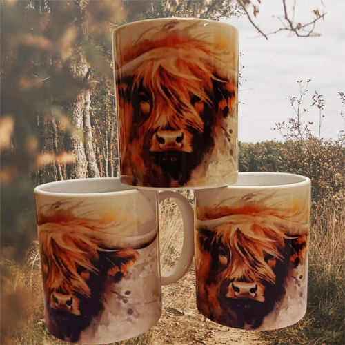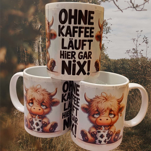 Sujet: Comic-Kuh mit Spruch "Kaffee"